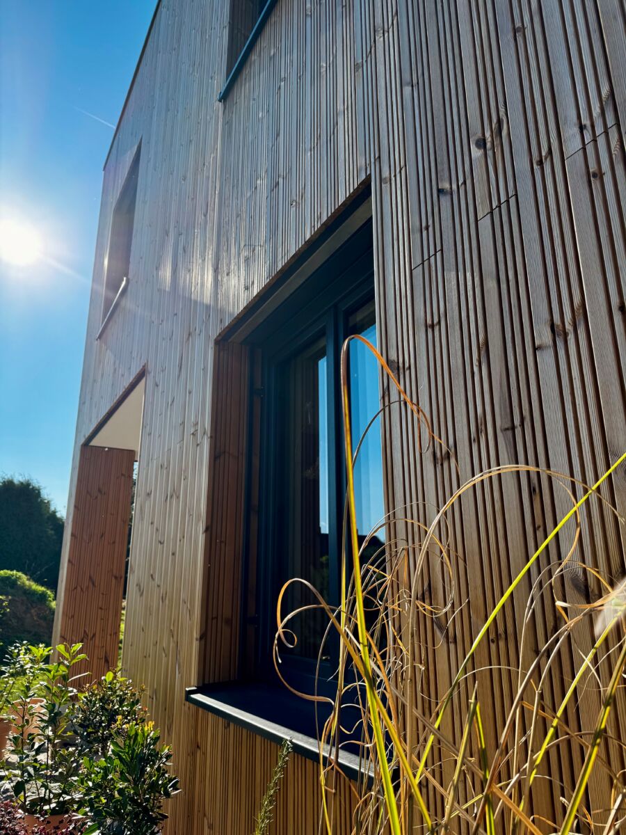 Immer wieder erhalten wir Fotos von den Projekten unserer Kunden, hier eine Thermokiefer Fassade mit dem R3D Profil, senkrecht montiert.
